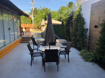 Wi-Fi em fibra óptica, piscina, espaço gourmet com churrasqueira, cervejeira, adega de vinho climatizada, salão de jogos, cozinha completa com todos os utensílios e com eletrodomésticos (Geladeira, freezer, Fogão com Coifa, micro-ondas, Cafeteira, mixer, airfryer Liquidificador, batedeira Torradeira, Fritadeira, Purificador de Agua Gelada), dependências completas de empregada, Área de Serviço com maquina de lavar, sala de jantar, sala de estar integrada com a área da piscina, toda em blindex, Varanda de refeição integrada com passa prato direto da cozinha, moveis de piscinas.
